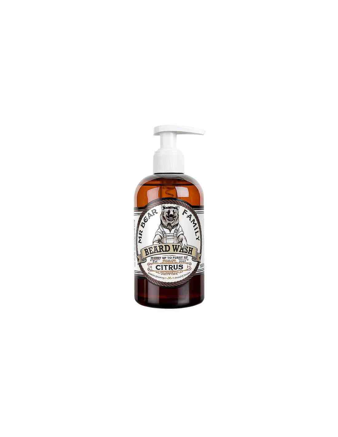 Mr Bear Family Beard Wash Citrus è un delicato shampoo per la barba il più naturale possibile a base di tensioattivi di origine vegetale.